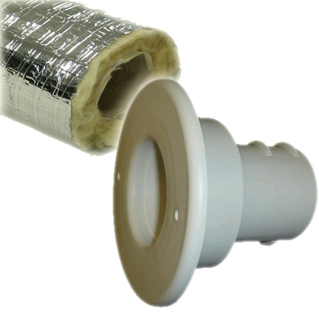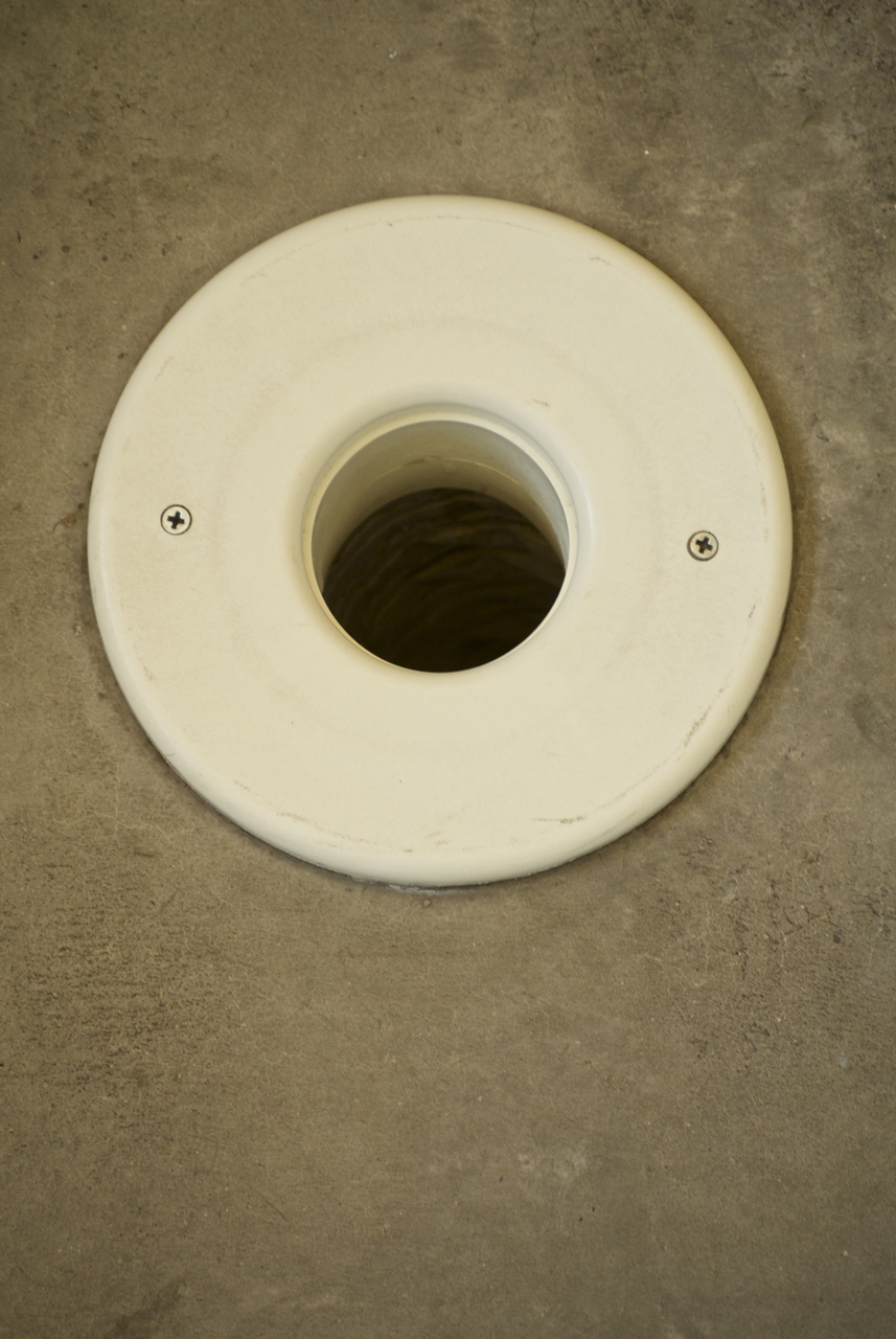 This third image is a close-up photograph of the 2 inch duct and the typical white outlet which fits into the end of the duct to finish off the appearance. These tiny portholes are what you’ll find projecting through the floors, walls and ceilings throughout the Byrne residence to supply cold, (summer), or warm, (winter), air in each zone/room.