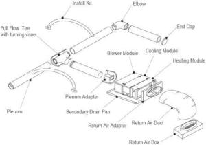 The second is an image of an air handler – the three units serving the Living Room/Kitchen/Dining room, the Master Bedroom/Bathroom and the entire lower-level, (Office, Living Room, Library, Laundry Room), look quite a bit like this one. The unit serving the Guest Bedroom/Bathroom on the main level is vertically-oriented, but made up of the same three elements, located in a utility closet in the Garage.