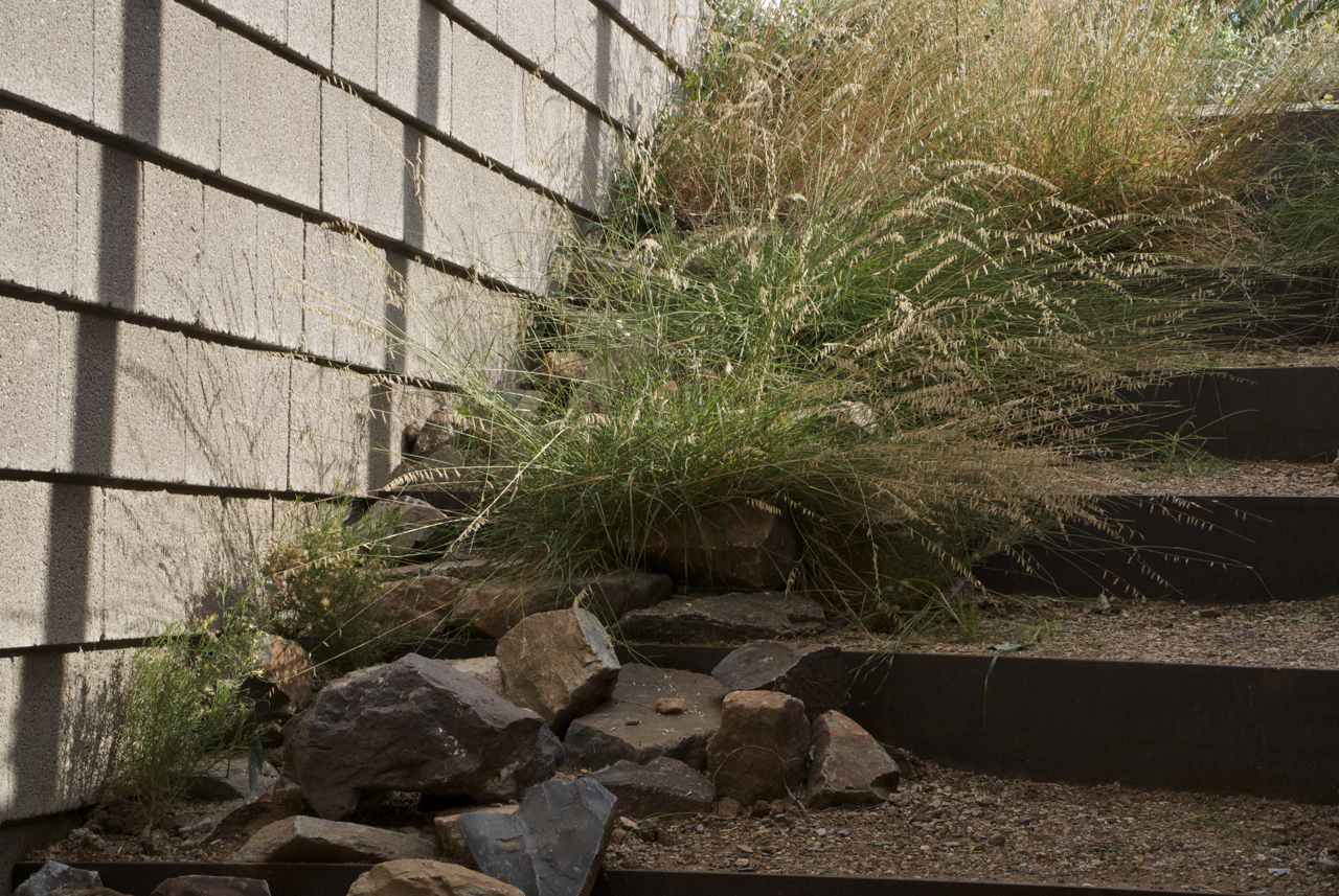 The specimens Todd Briggs chose for the stairway have firmly taken hold – the following three images illustrate how quickly desert plants can establish themselves when supplied with the appropriate amount of water during what is typically a challenging time of year.