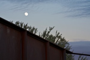 A few minutes later, Martha captured this image, (below), with the moon rising. The tips of the Ironwood are visible, peaking above the top edge of the steel panels surrounding the deck itself.