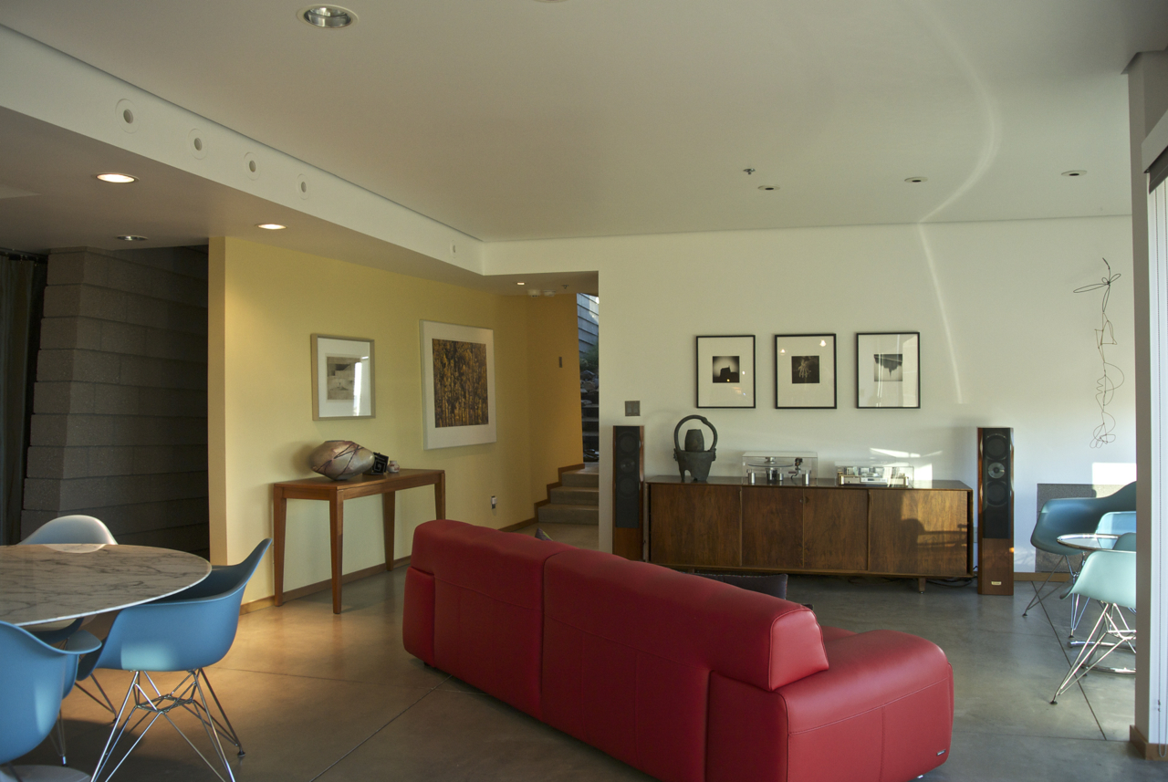 This first image, (below), builds on a photograph I included in the July post describing recent interior changes at the Byrne residence – here we’re highlighting the Roche Bobois BLOGGER sofa we’ve placed on the Lower Level in the Living Room – the sofa is now set at an angle relative to the wall in front of it.