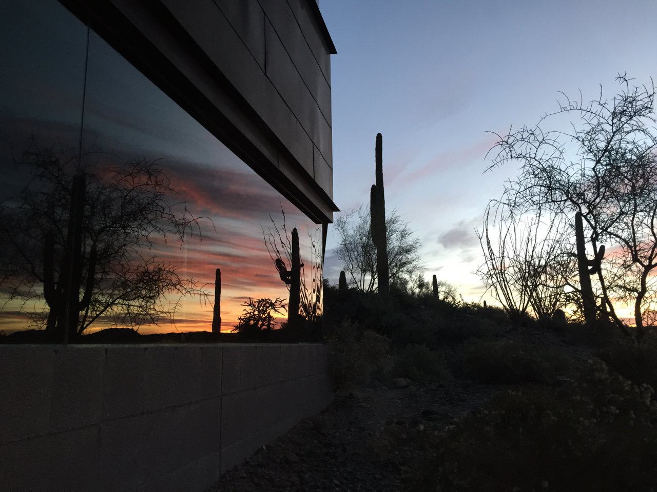 This image, (below), was taken from the street running to the north of the Byrne residence, looking southwest – you can catch a glimpse of the CMU wall at the very bottom of the photograph, with incredible cloud formations catching the final rays of the setting sun – one of my favorite images to date!