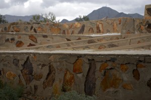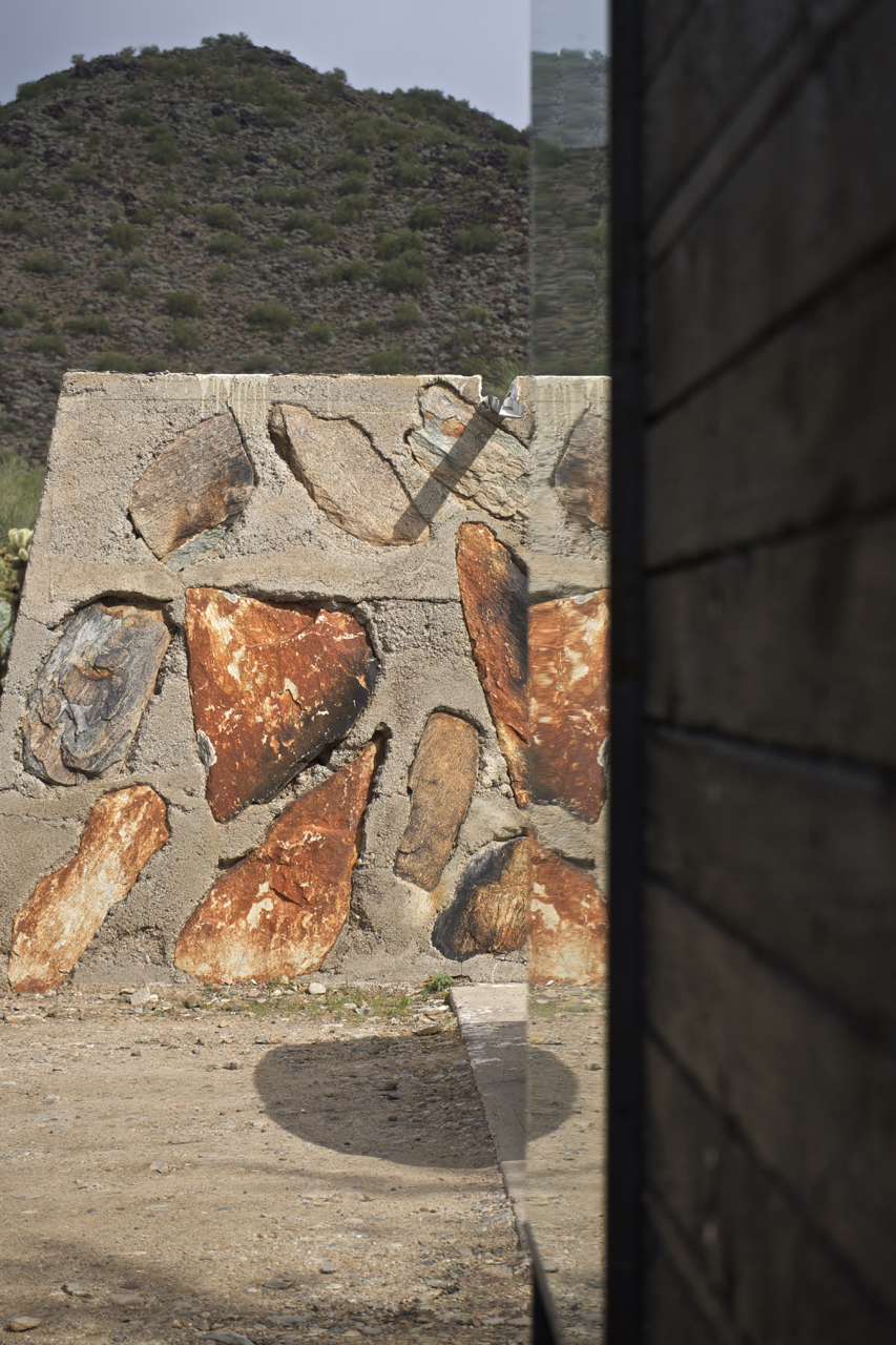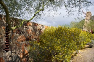 These last two photographs contain examples of more “desert rubble masonry” wall construction found at Taliesin West. Martha’s images contain glimpses of the expertly-placed boulders within each wall – the blend of color, texture, size and scale cannot be fully-appreciated unless you are standing right there in front of these wonderful masses…
