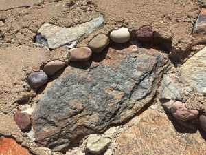 Small, so-called “goose eggs” were used to prevent the concrete from seeping down across the face of the larger boulders. You can see examples of this technique being applied in the following two images, (below), taken by Martha out closer to the entrance.