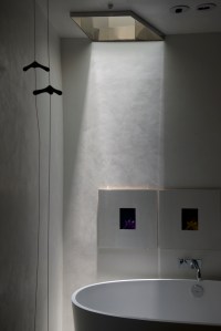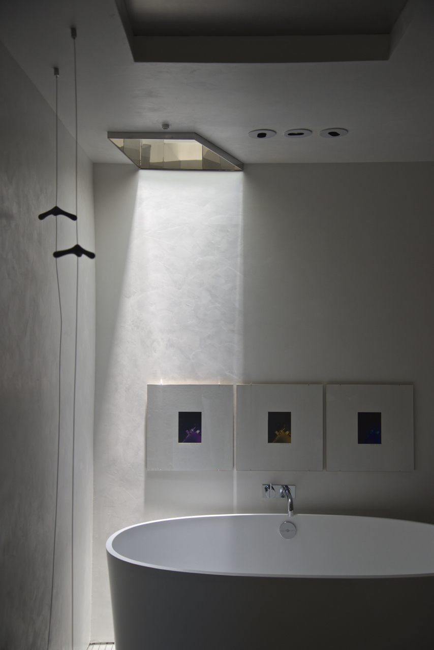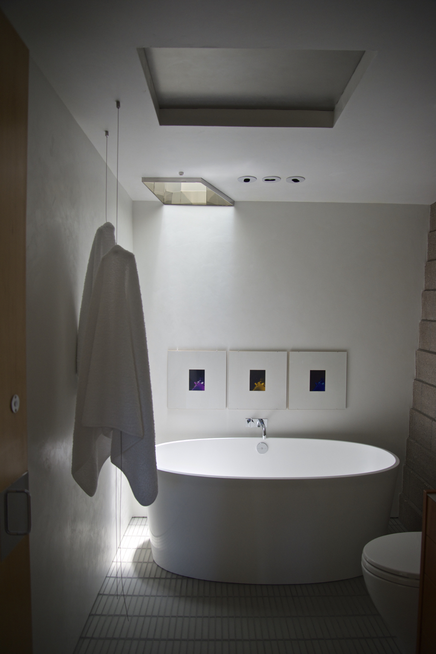 Our so-called “oasis of calm” on the Lower Level is proving to be just that. The entire space glows as the sun beams down the two story light well and off the polished stainless steel framing the aperture.