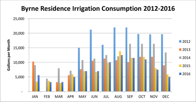 - The new irrigation system was activated in May of 2012, (just as we were wrapping up the rather significant landscaping project we undertook earlier that year), thus explaining the lack of data for the months of January through April of 2012.
