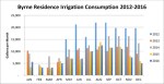 - We consulted with Todd Briggs of TRUEFORM Landscape Architecture Studio at the end of 2014 specifically to revisit the irrigation schedule covering September through December, and, as a result, the usage trend in 2015, (as well as the projected trend for 2016), looks much more like the observed 2013 trend, which we regarded as being more in keeping with the actual irrigation requirements for that time of year.