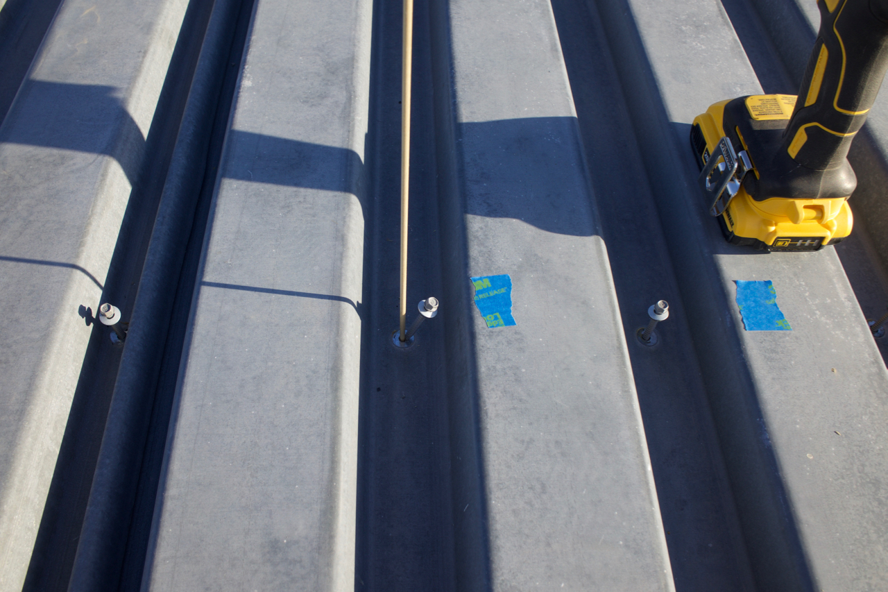 To be clear, with 3,250 of these 1/4 inch head, 1 1/2 inch long zinc-plated #9 screws in place, and another thousand 5/16 inch head, 1 1/2 inch long zinc-plated self-tapping #9 screws securing the lapped joints and perimeter of each corrugated panel, there was never a concern with the structural integrity of the roof – it was, (and still is), always a priority to preserve the water-tight seals everywhere on the roof, period.