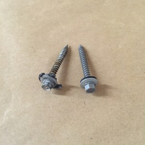 The screw on the left is an original – that rubber washer has certainly seen better days! The screw on the right, (an exact match to the original), is what I’ve installed – what a big difference! The zinc plating is fresh, the steel washer is slightly domed and the rubber washer is pliable enough to form a water-tight seal when the screw is cinched down.