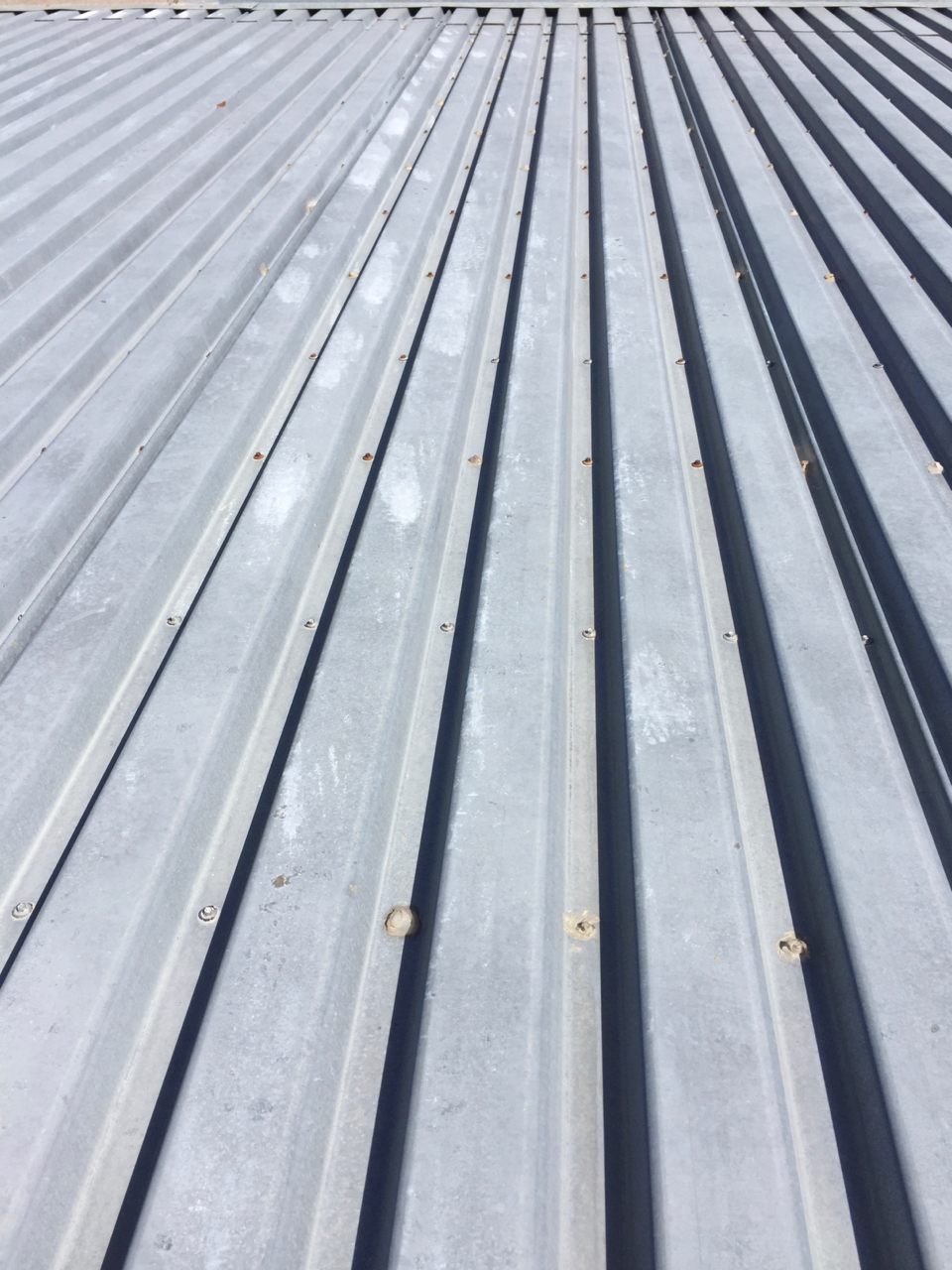 Why? Eighteen years of exposure to the desert sun had taken its toll on the 3,250 zinc-plated screws holding the dozens of corrugated steel roofing panels in place, (see image below).