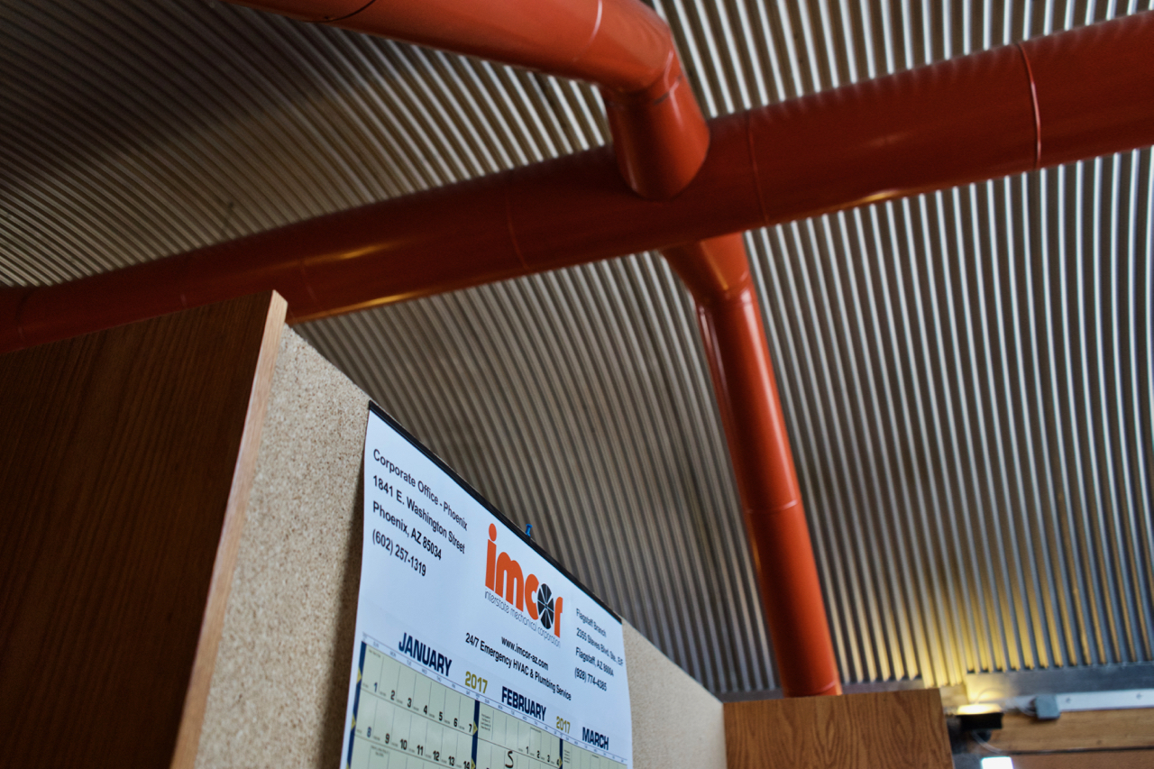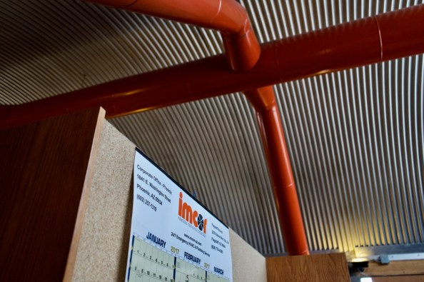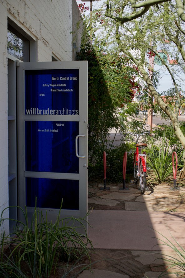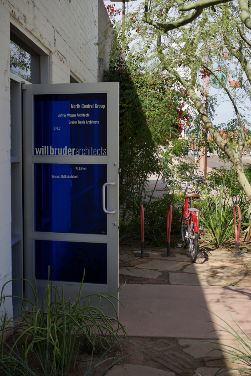 We began the day by gathering in the parking lot of the Burton Barr Phoenix Central Library, boarding the tour bus with over forty other architecture enthusiasts, before departing for the offices of Imcor, one of Will Bruder’s earliest commercial projects.