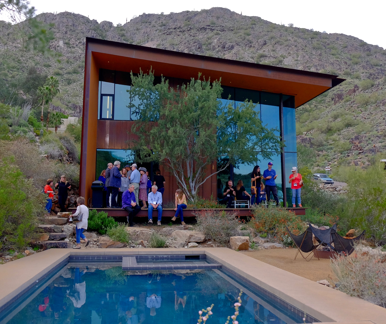 The final stop on the tour was the iconic Jarson Residence. We enjoyed yummy hors d’oeuvres from Postino, while Scott Jarson thanked everyone for supporting the ASU Art Museum, closing with heartfelt thanks to both Will Bruder & Louise Roman for their warm hospitality at the studio, as well as Will’s remarkable insights all day long! These last four photographs were taken by Eduardo Robles.