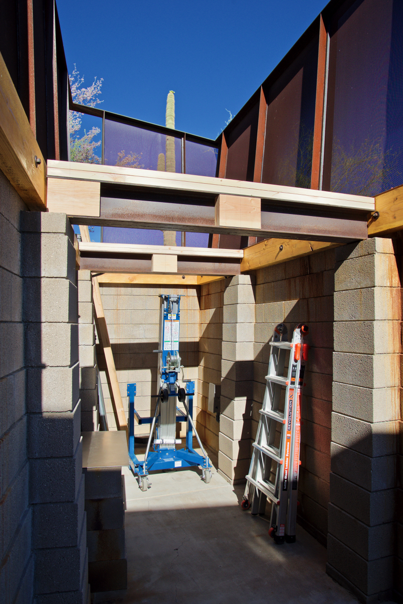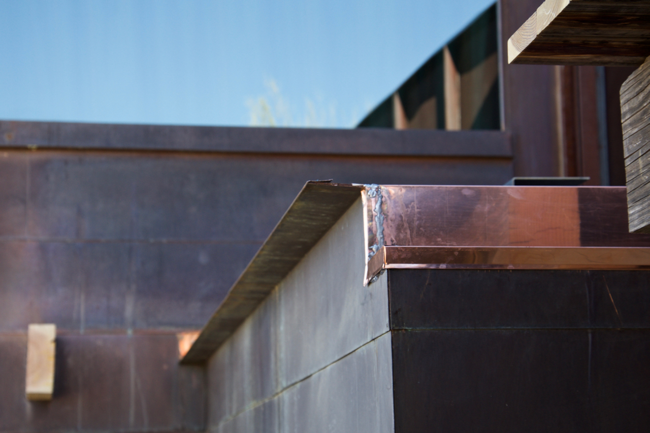 Update #9: Days 25 – 31 required some rethinking… The second piece of steel was test fit yesterday, and Tin Works was onsite to evaluate the copper cladding/flashing needed to complete the project. Roofing delayed ’til 29th.