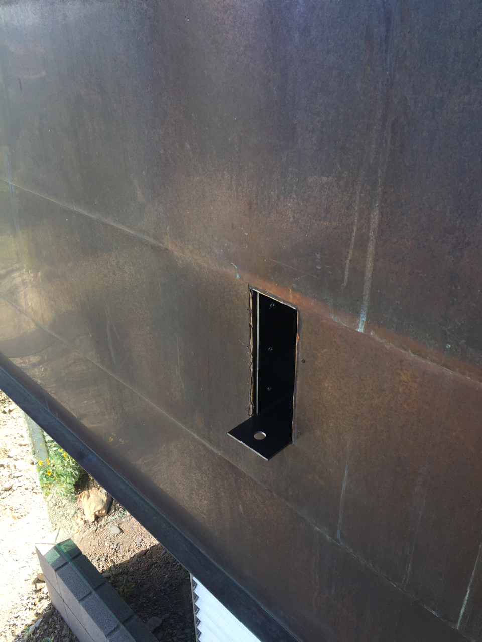Update #8: Days 22 – 24 meant first bracket was installed today and roofing will be installed a week from now. I’m having 2 pieces of steel fabricated, (the first of which I picked up on Friday), to improve the seam between the wall and the roof. This one went in today!