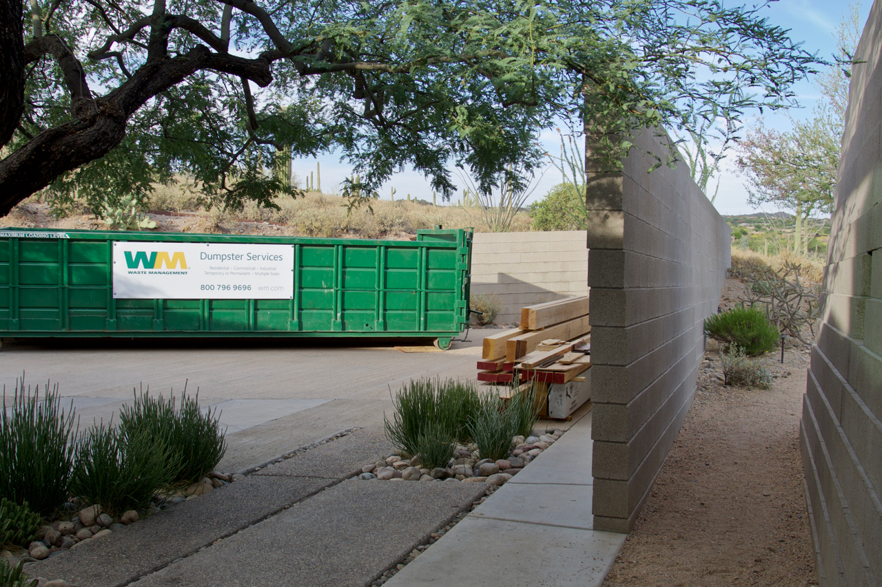 Update #18: Day 56 – 58 = demolition! I had a 20 cubic yard dumpster delivered Thursday and spent the day filling it up with the material I’d pulled off the Laundry roof, as well as the rest of the planks from the entire deck. I’ll start cutting the big beams down tomorrow, (Saturday), and if all goes well, on day 60, (Sunday), I’ll have every scrap of old wood in the dumpster!