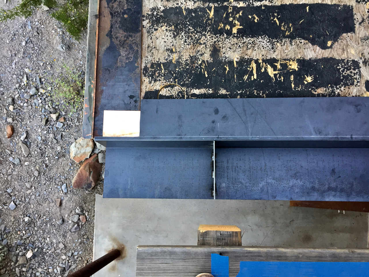 Update #22: Days 67 – 68 ledgers weatherproofed and I-beams placed. Monday was a no-deck day and Tuesday was spent waterproofing the sanded surfaces and re-installing the I-beams in preparation for re-welding them in place.