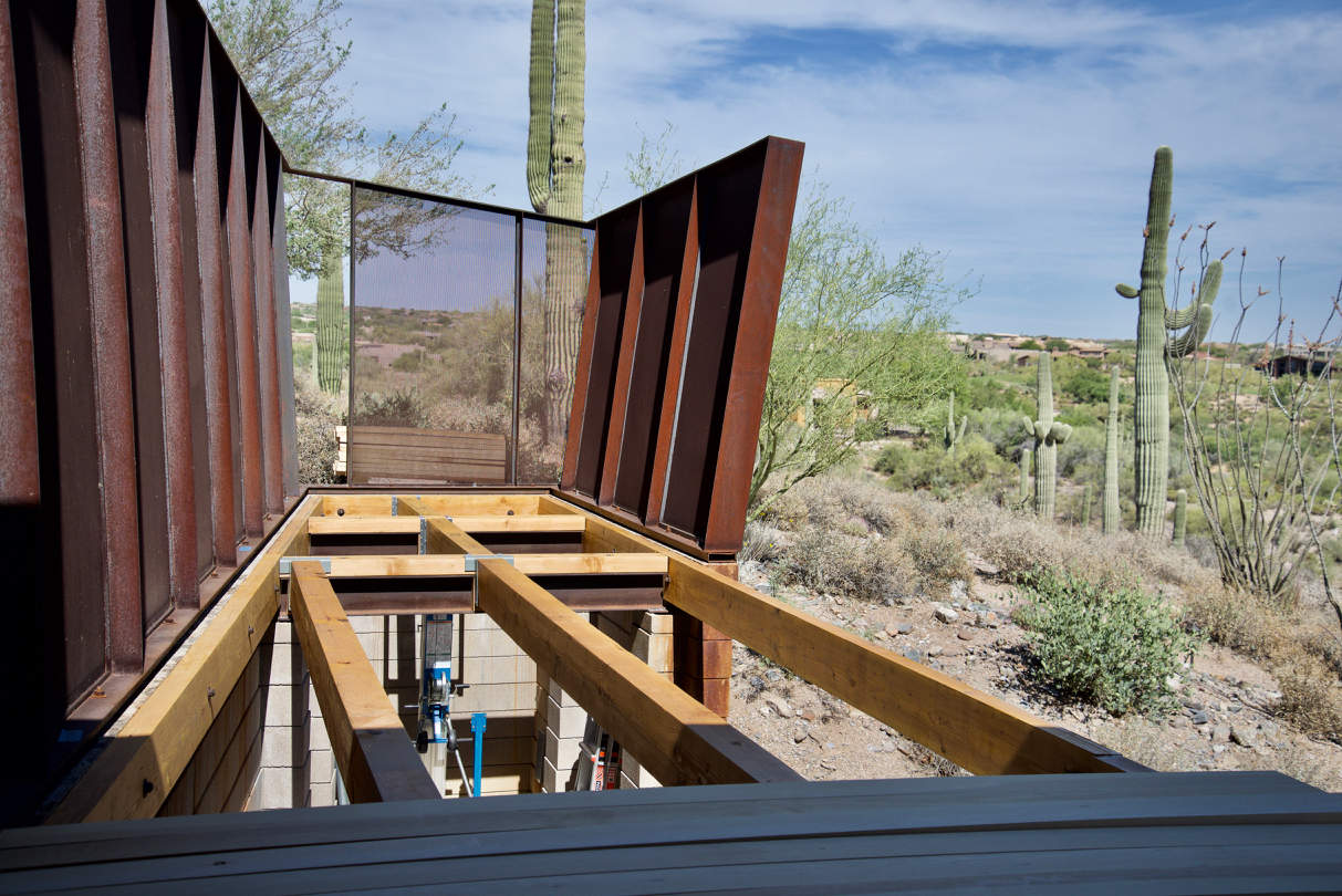 Update #23: Days 68 – 70 nailers/blocking… I spent Wednesday – Friday fabricating the nailers and blocking which will be attached to the I-beams. Cave Creek Welding checked out what needs to be done, but it’ll be next week, ugh… Happily, all of the new incense cedar deck planks were delivered Friday afternoon!
