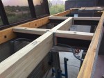 Update #27: Days 83 – 84 It’s time for the deck planks! Todd and I finished cutting, drilling/routing and dry-fitting monster beam #2 at about 8:00 AM this morning. First, an image from Monday while we were working on monster beam #1, then an image Martha captured while standing in the Laundry doorway looking upward and to the east shortly after we finished up earlier today.