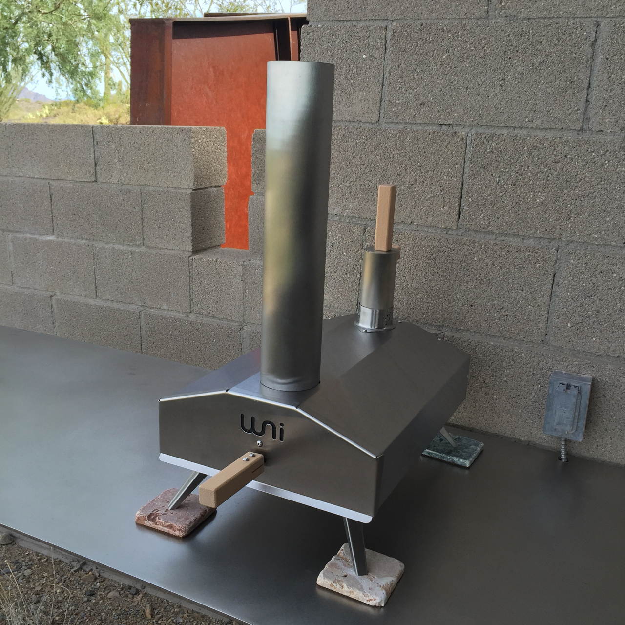 After discovering the Uuni Wood Fired Pizza Oven on uncrate.com earlier in the month, my birthday present arrived just in time to get two trial pizza baking sessions completed before we found ourselves heading into July. Doesn’t this marvelous device look right at home on the west patio?