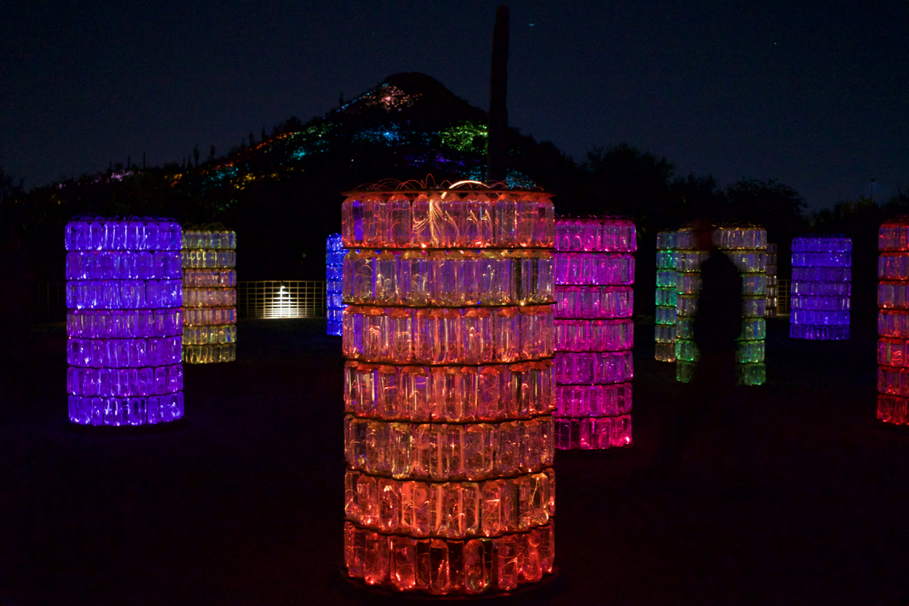 Wow! We attended the opening of the exhibit called “Sonoran Light” at the Desert Botanical Garden on November 20th and were absolutely astounded by what we saw!
